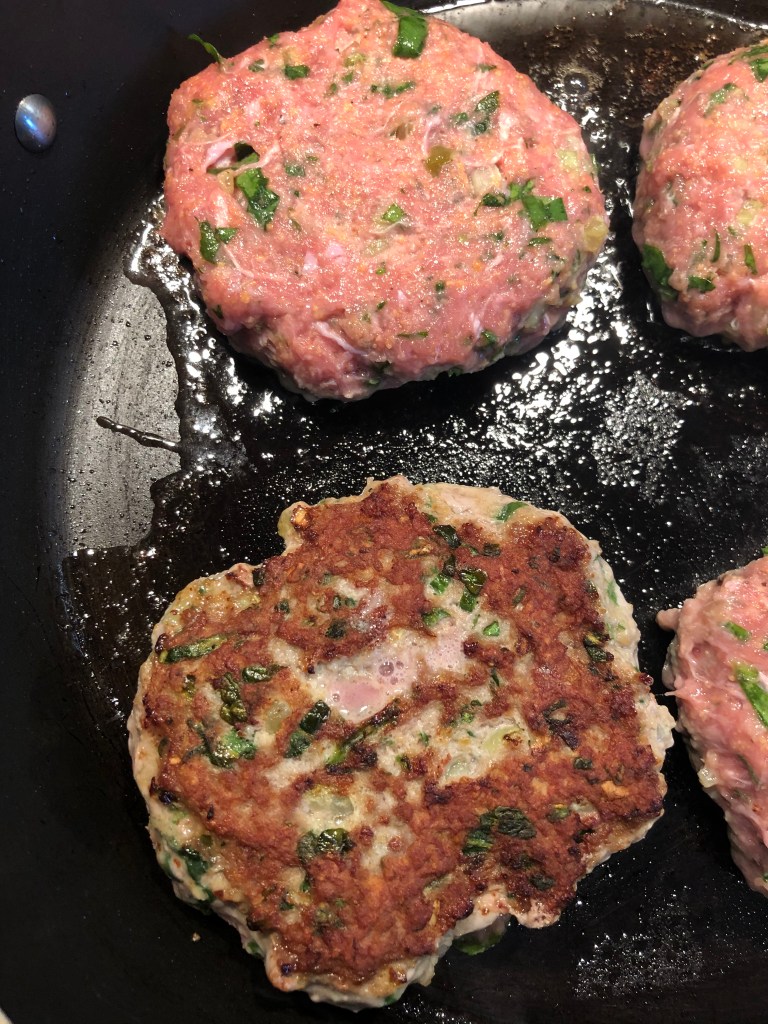 The meat choice really is interchangeable, I just use whichever is available, and if I’m unable to find ground turkey or chicken, I just whiz it in my food processor until it’s nicely minced. If I’m going that route, I generally use breast meat just cut into small chunks and pulse until it starts to combine, scrape down the side of the processor bowl and blitz again until the desired consistency.